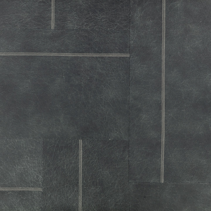 A patchwork of Japanese papers, crumpled, hand-coloured and mounted on a paper backing brings texture and depth to a stitched linear design in this architectural wallcovering.
