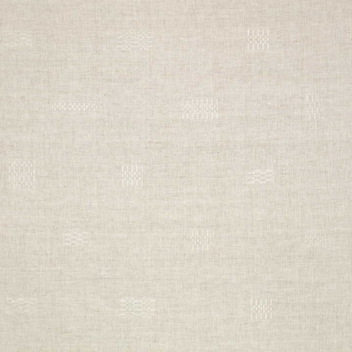 Un suave bordado geométrico en damero adorna un fino fondo de lino, creando un tejido de inspiración folclórica. Originalmente pintado a mano, Motif se ha traducido maravillosamente en un bordado guiado a mano con puntadas sutilmente lustrosas, ofreciendo un elegante contraste con el fondo de lino seco.