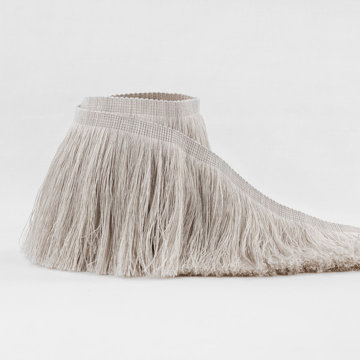 Una elegante frangia in puro lino dalla peculiare lunghezza, disponibile nei fondamentali colori neutri di Mark Alexander.