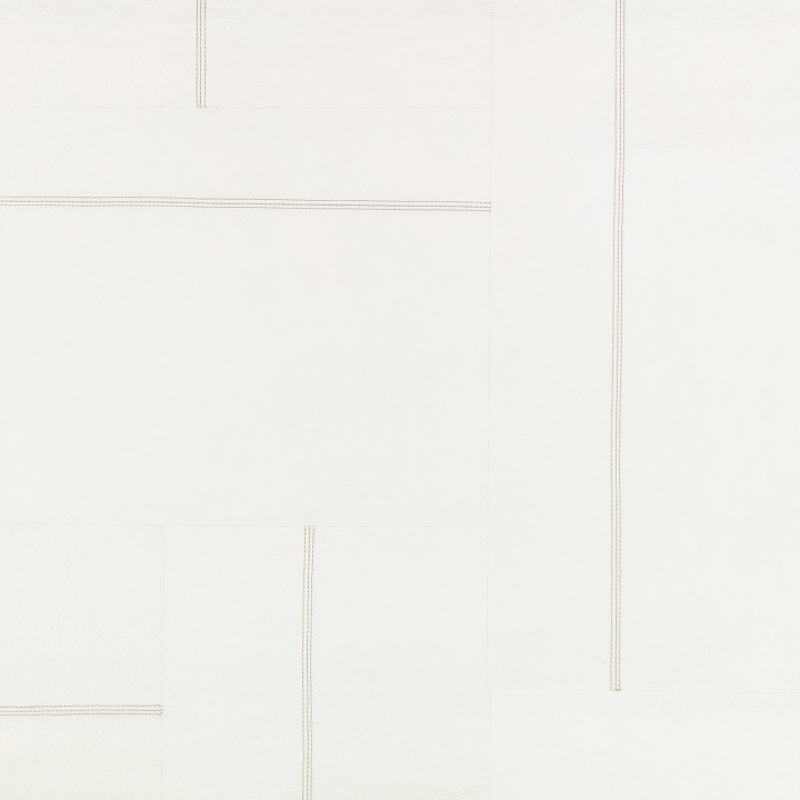 Un patchwork di carte giapponesi stropicciate, colorate a mano e montate su un supporto di carta, conferisce consistenza e profondità a un disegno lineare cucito in questo rivestimento murale architettonico.